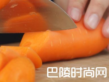 1胡萝卜洗净切滚刀块。