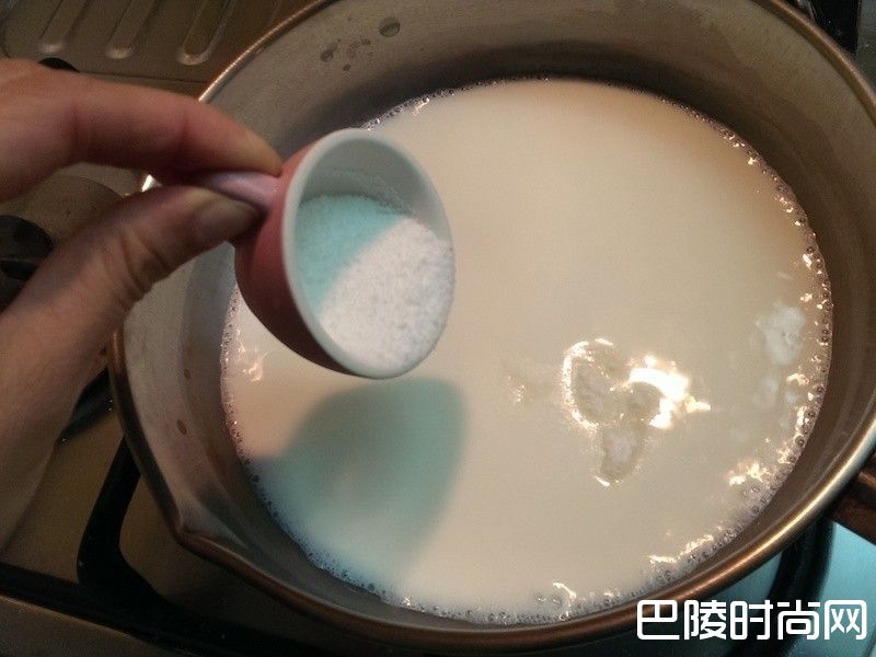7待牛奶加热冒小泡倒入吉利T粉混合关火