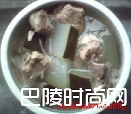 排骨七两,冬瓜一斤,盐少许,白醋两滴,鸡精少许