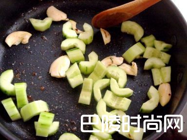 9把蒜头和青瓜炒香