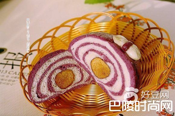 做法1、蒸熟的紫薯 挤压成茸放酵母粉