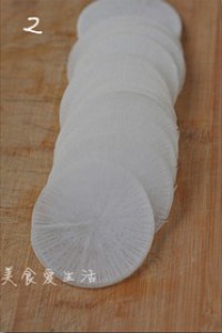 2.萝卜不要去皮,带皮才会爽脆,洗刷干净切成薄片