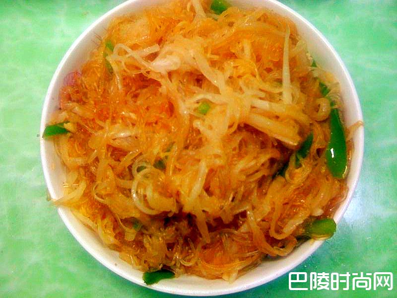 2、绿豆细粉丝,放入热水里泡软,淋干水备用。