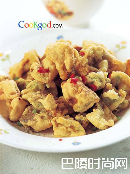 花菜300克 鸡蛋1个 红辣椒1个 香葱3棵 生姜1小块 大蒜3瓣 淀粉适量 食用油500克 (实耗50克) 香油1小匙 椒盐2小匙 味精0.5小匙