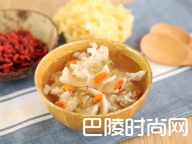 2将木耳,淮山,杞子和桂花酱在锅中混合