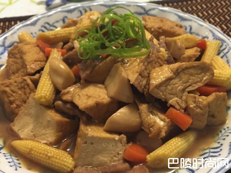 油豆腐(可切小)八块 红萝卜(切片)一小块 玉米笋(斜对切)十根 肉丝一大匙 蒜末一匙 蠔油一匙 鲣鱼粉(取代味精的东西)一小匙 盐适量 醃料*** 酱油膏一匙 米酒一匙