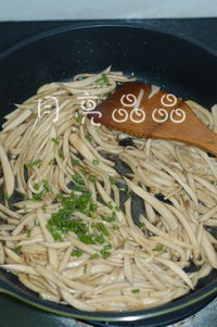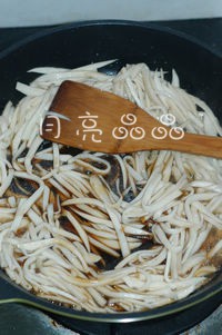 6.保持中火不断翻炒,会发现杏鲍菇慢慢变软并且开