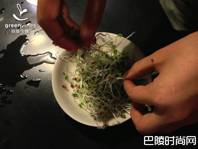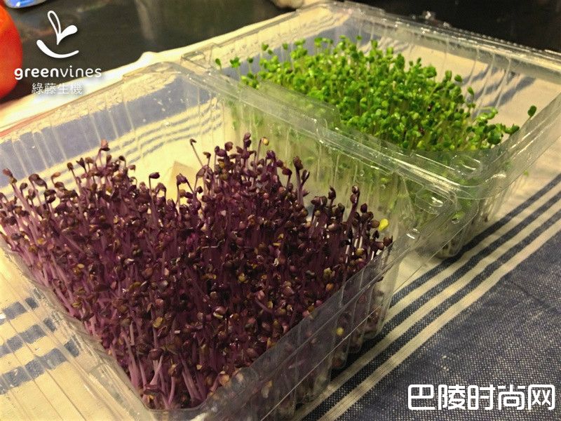 1准备好绿藤芽菜:青花椰苗,紫高丽苗