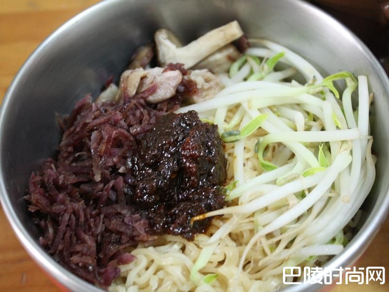 2将香菇,豆芽菜,红心地瓜,川烫一下 ,就可以准备加上维力炸酱