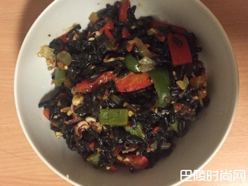 黑米面orzo2人 红黄青椒2颗 蒜2片 洋葱半颗 大番茄4颗 鱿鱼适量 辣椒1根 橄榄油适量 盐适量 巴西里叶适量 胡椒适量 做法
