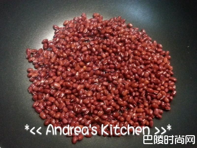 1红豆洗净后,放入炒锅(可有一点点水),开始拌炒约5分钟后,水滚冒烟后即关火