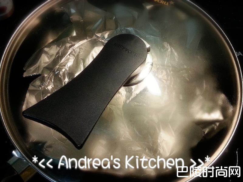 2在红豆上面放上铝箔纸,盖上锅盖,闷5分钟后再重复步骤1&2一次(这方法是阿基师偷甲步:可加速红豆软化,且不易煮成红豆沙汤~)
