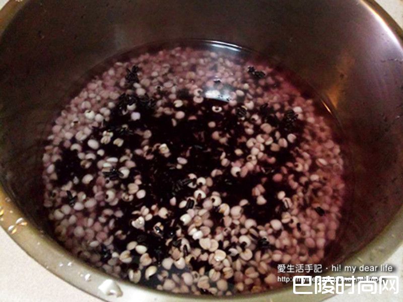 1先将一杯薏仁泡软、加入黑米两杯,加水。用电锅煮熟。