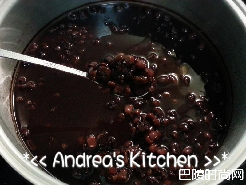 4等电锅跳起来后,外锅再加入1.5杯水,内锅因为煮过一次变浓稠了,可再加些许水分,再煮一次后,闷个30分钟,红豆就煮透了~