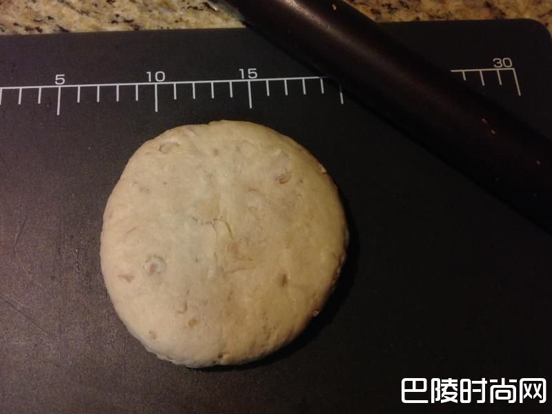 27用手掌轻轻将面团压扁