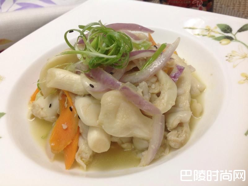 4紫色洋葱略炒、葱绿丝、芝麻提味