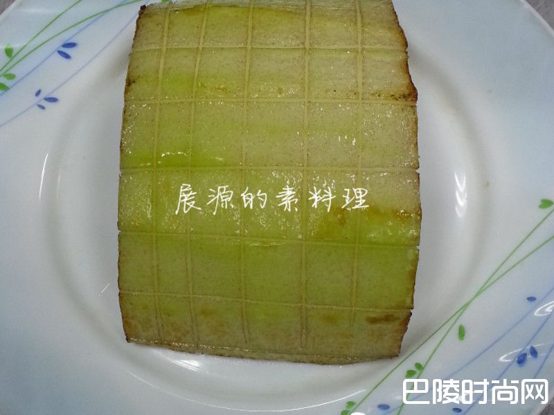 1冬瓜块先切井字刀后炸过备用
