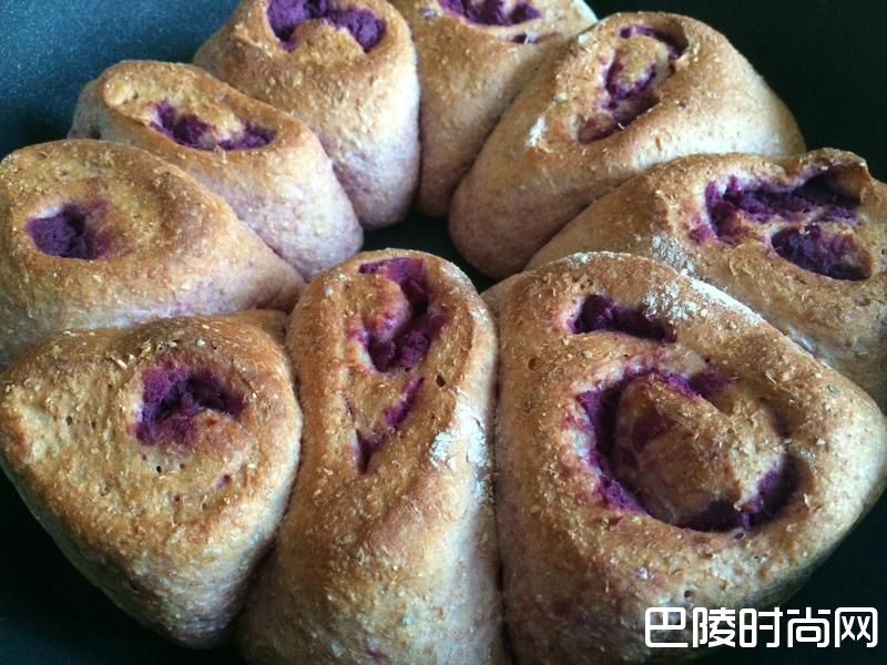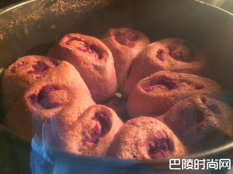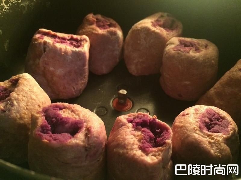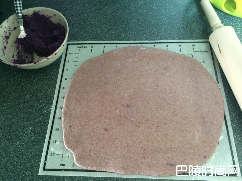 2捍平面团,包入紫薯内馅