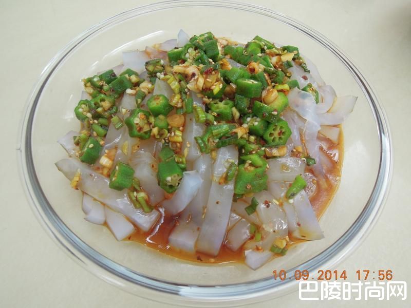 绿豆淀粉1杯 水7杯 盐少许 自制麻辣油1t 蒜末1t 葱花1T 酱油1T 柠檬汁1T