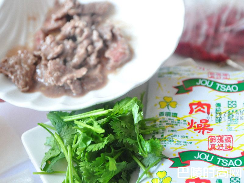 2备料:牛肉片、香菜段、郭妈妈肉燥包、板条2片