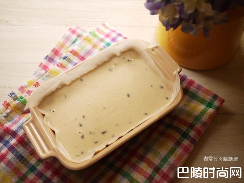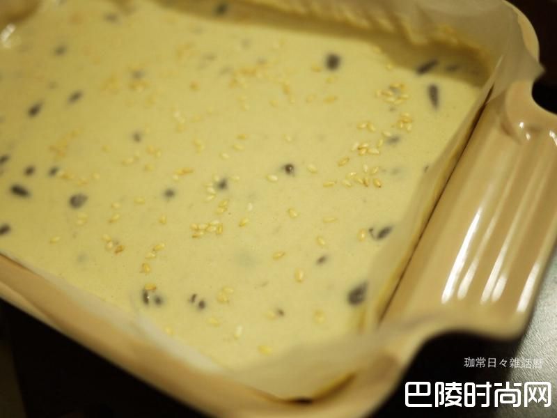 5倒入已铺好烘焙纸的烤盘,也可不用烘焙纸以在烤盘里抹油方式再脱模