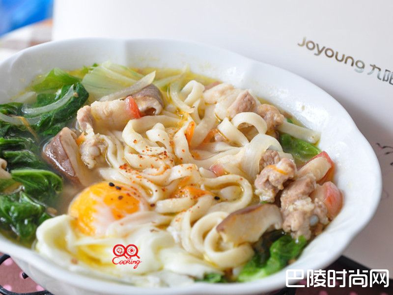 喜欢面食的我,常常想若能自己亲手做面条,事件多幸福的事情.. 但每每看到其他人分享手做面条...光是面粉、揉面、杆面...就让怯步不已.... 有了九阳制面机,用智慧取代人力,却不失面条的原味...能在20几分钟内轻松做面条,超级有成就感~ 这是我的第一次手工制面,来个随意食材搭配宽面条煮成汤面,开心享受制面乐趣与成果! 材料