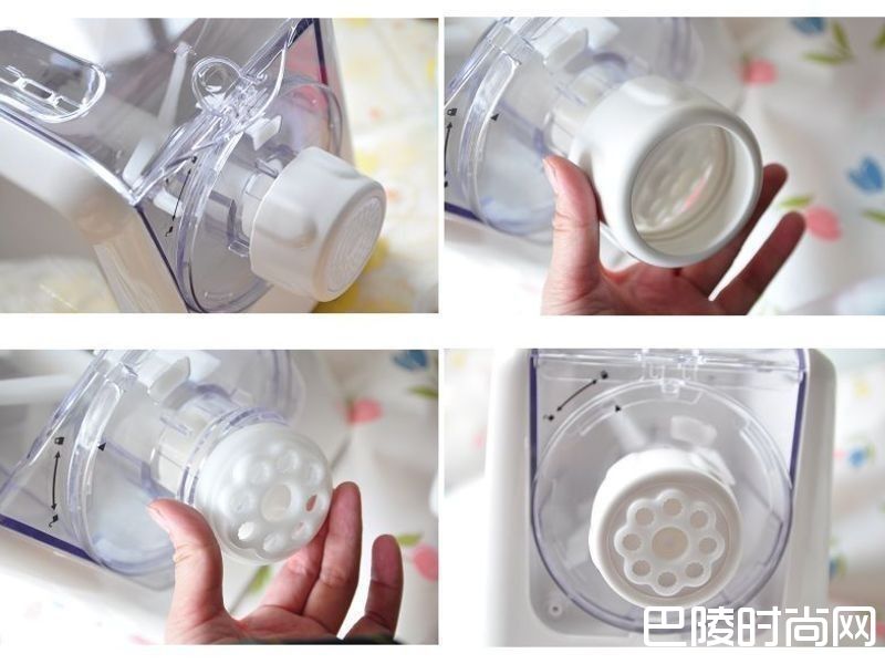 3选择自己喜欢的面条型状模头,轻轻转动出孔处的模头盖,套上模头,再拴紧模头盖