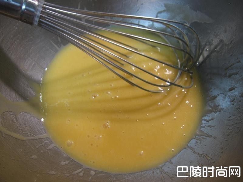 2先将鸡蛋和橄榄油打匀至有点乳化即可。
