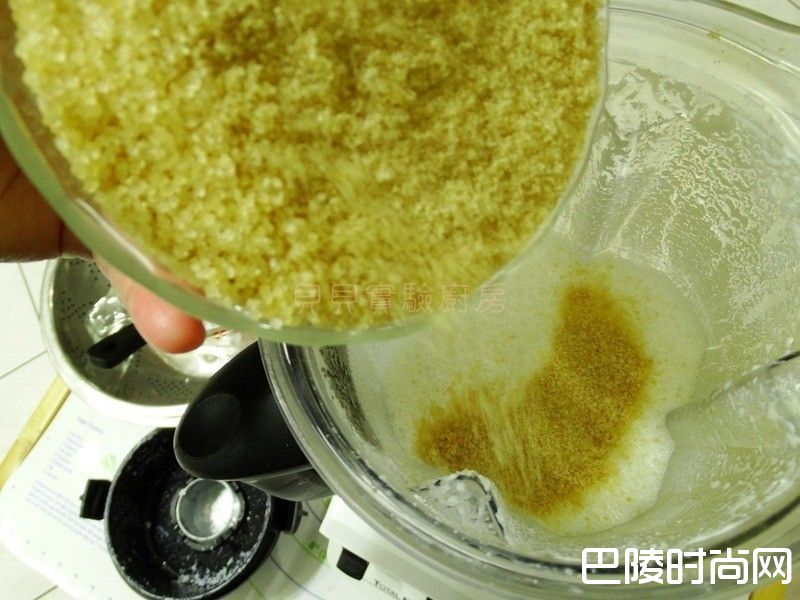 3然后直接加入糖,用调理机搅打均匀,变成甜米浆
