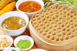 1. 冻豆腐解冻后用牛肉片捲起,再用竹籤串起。