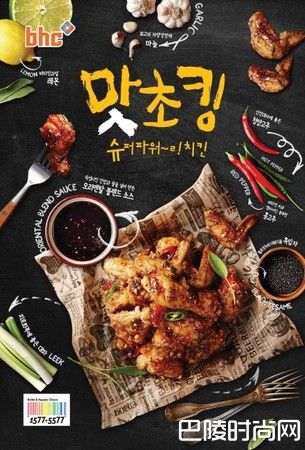 맛초킹:由蒜葱酱油调制的酱料炸鸡,偏重口味一派其实吃起来有点台湾味XD,他可是BHC的招牌口味唷~