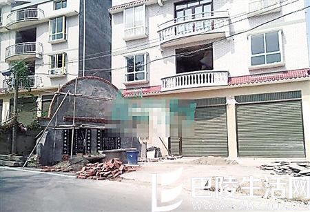 重庆忠县拔山镇杨柳村,两家人闹矛盾,迁坟事宜没有谈妥,其中一家把坟到另一家的大门口,两端还贴着黑色对联。