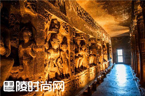 阿旃陀石窟位于印度西南部马哈拉施特拉邦奥兰加巴德县阿旃陀村的瓦古尔纳河谷,是在离谷底76米的悬崖峭壁上开凿成的一处佛教庙宇,四周风景如画。