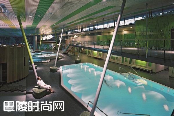 作为欧洲最时髦的温泉,瓦尔斯温泉把他的天然温泉泳池建在一个有着鲜明的六十年代现代主义建筑背景中,所有的板墙壁和下沉的楼梯中。如同恶棍詹姆斯邦德的归隐处,它位于阿尔卑斯山的半山腰处。它的内部看起来像一家时尚的夜总会,但当虔诚的游泳者静静的将自己沉浸在室内外泳池、冰火浴和特别设计的音乐装置中时,它感觉上更像是一座教堂。在夏季,您可以享受一场爵士音乐会,也可以浸在水中倾听室内音乐。