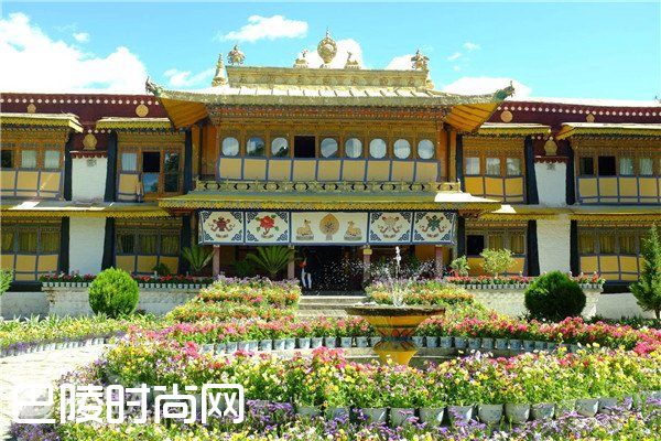 宫殿共三层,一层是经堂,前面有一个600平方米的石板院子,二层有罗汉殿,护法殿和达赖阅经室,三层是达赖接见僧俗官员的地方。园中树木茂盛,花卉繁多,更有亭台池榭,林竹山石,珍禽异兽等,宫前长廊和室内雕梁画栋。