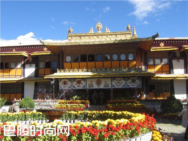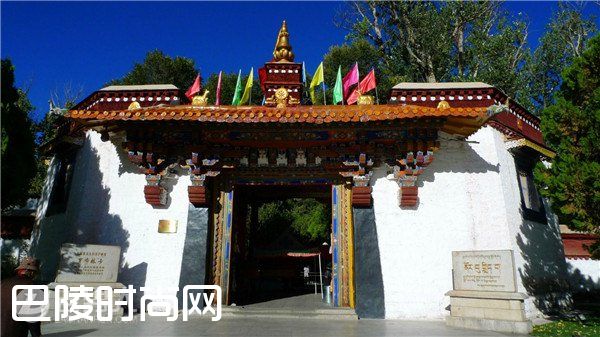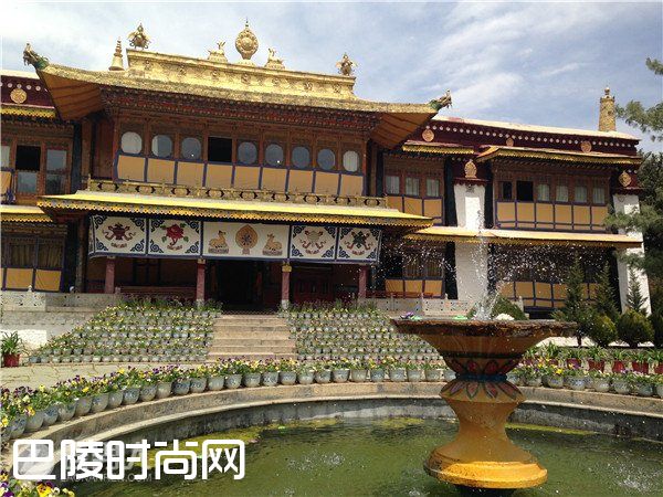 除此之外,园内很多佛龛、宗教用具、金顶屋檐、门楣雕饰等,也都出自"雪堆白"工匠之手。"雪堆白"造像特点是制作精细、比例匀称、色彩鲜明艳丽,佛像上的镀金厚重,镀金面光洁度高,佛冠、耳坠、臂钏、手镯、飘带等饰物,一律用绿松石镶嵌。这些明显特征,说明18世纪中叶以后,西藏本土佛像打造技术已步入了独立发展的成熟阶段。
