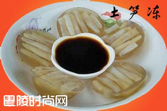 土笋冻,是发源于福建泉州的特色食品,是一种由特有产品加工而成的冻品。它含有胶质,主原料是一种蠕虫,属于星虫动物门,学名可口革囊星虫,身长二、三寸。经过熬煮,虫体所含胶质溶入水中,冷却后即凝结成块状,其肉清,味美甘鲜。配上好酱油、北醋、甜酱、辣酱、芥辣、蒜蓉、海蜇及芫荽、白萝卜丝、辣椒丝、番茄片,就成了色香味俱佳的风味小吃。