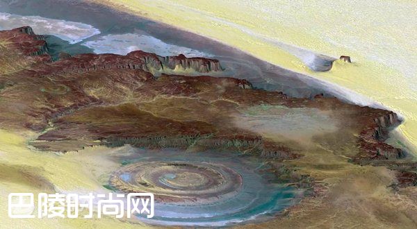 撒哈拉之眼又被称为“理查特结构”,位于当今世界上最大的沙漠——非洲撒哈拉沙漠西南部的毛里塔尼亚境内,它的直径达到48公里,从太空上清晰可见。起初该地形被认为是由于陨石碰撞而形成的,目前地质学家认为这可能是由于地质结构上升或侵蚀造成的,这种环型外型的形成至今仍是一个谜团。