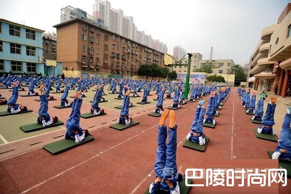 比如济南的这一所小学,课间操竟然是一字马,下腰,前滚翻等高难度动作……