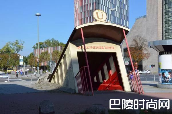 这个地铁站的一大亮点是它那神奇的车站入口,造型仿佛是一截从地下冲出地面的火车车厢,将路面也撞破了,留下凌乱的碎石。这个入口的设计富有幽默感,让往来的行人都忍不住多看它几眼。
