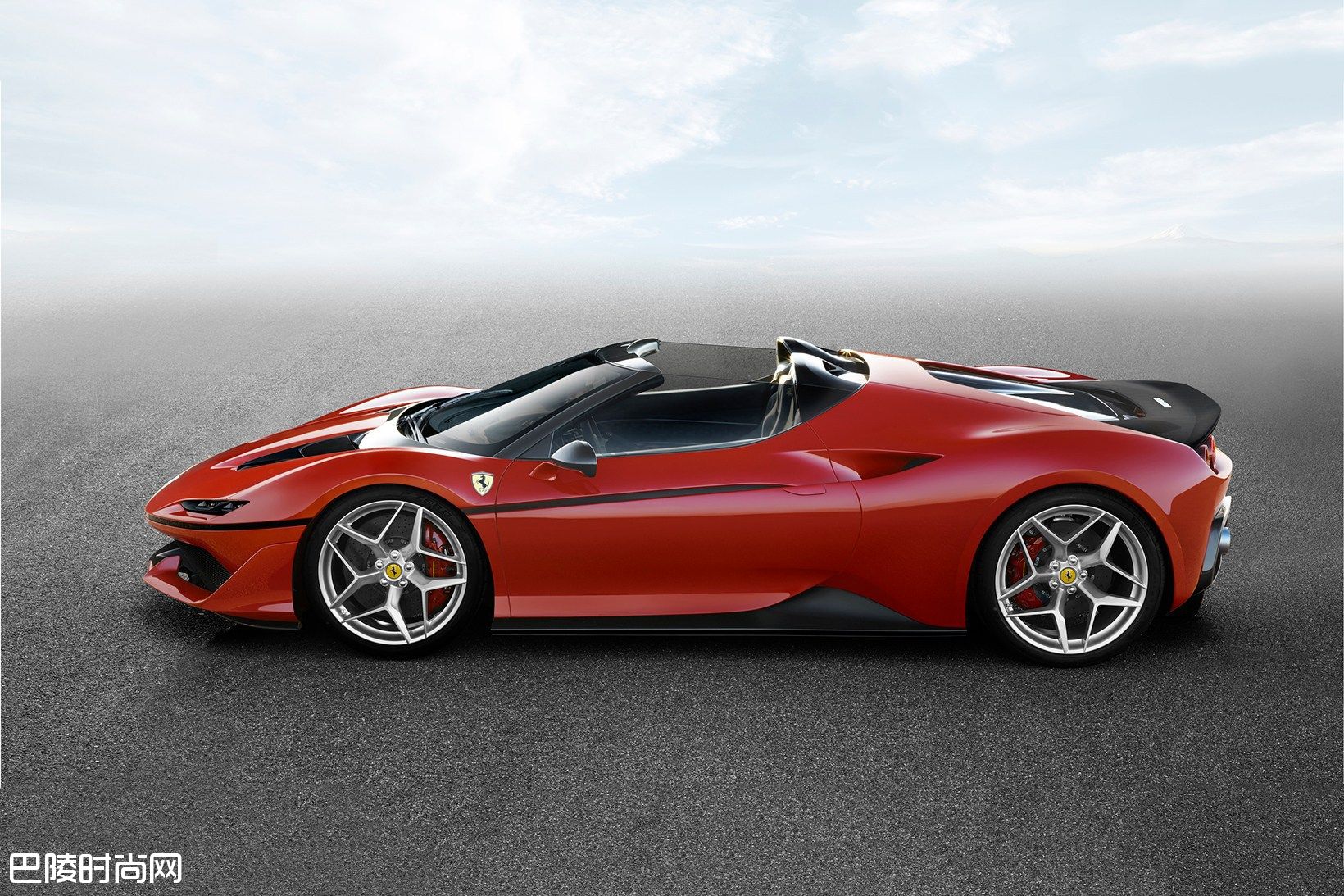 近日,Ferrari 打造了一款名叫 J50 的特别版跑车,以庆祝品牌进入日本市场 50 周年。这款日本独享的纪念版跑车,是基于 488 Spider 而定制打造的款式,其最大亮点在于激进的外观设计,包括夸张的车头进气格栅,前行李厢盖上的碳纤维气孔,细长的全 LED 大灯,20 英寸星形锻造轮圈,以及贯穿前部与侧身的黑色装饰条等等,大大增加了整体的速度感和攻击性,同时也可以看到 Ferrari 288 GTO, Ferrari F40 和 Ferrari F50 等经典设计的影子。动力方面,J50 将搭载与 488 Spider 相同的 3.9 升 V8 引擎,经过重新调校之后,动力输出从 670hp 增加至 690hp,而峰值扭矩也达到 760Nm,搭配 7 速双离合变速箱,预计最高时速能达到 325km/h。至于内饰方面基本保持了 488 Spider 的设计,不过加入了大量碳纤维材质点缀,同时中控台、座椅也采用红色皮革与 Alcantara 材质拼接增加亮点。据悉,这款 Ferrari J50 只会在日本市场限量推出 10 台,用户可以根据需求享受个性化定制服务。