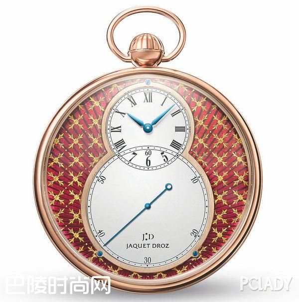雅克德罗工匠大师基于这个时代的金箔,开始重新复苏这项工艺,今天,他们在同一枚时计上融合古今技法,并以金箔雕花工艺结合独特的大明火珐琅染色工艺,严谨工致的几何图案与光华熠熠,绚丽的珐琅相映生辉,为这两枚怀表注入全新的情感内涵,凝聚数百年手工技艺精萃和极致现代风范,展现难能可贵的奢华绅士风范。