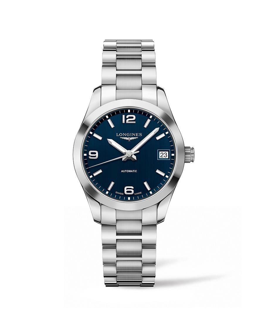 直径34毫米的女士腕表拥有精钢表壳,搭载L888自动上链机械机芯。蓝色表盘搭配镀铑指针,并涂以Super-LumiNova®夜光涂层。两款腕表的透明表背处均印有世界高山滑雪锦标赛的标志。精钢表链则与表款的整体造型相得益彰。