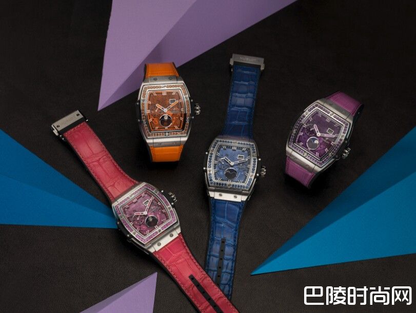 HUBLOT宇舶表对色彩充满热爱,此次将蓝色、紫色、橙色和粉色融入全新Big Bang灵魂月相腕表。与之相配的表带、石英表盘、喷砂月相盘、指针、时间读数和宝石镶嵌表圈均被赋予同色系,为这个单色腕表系列开创了栩栩如生的视觉基调。