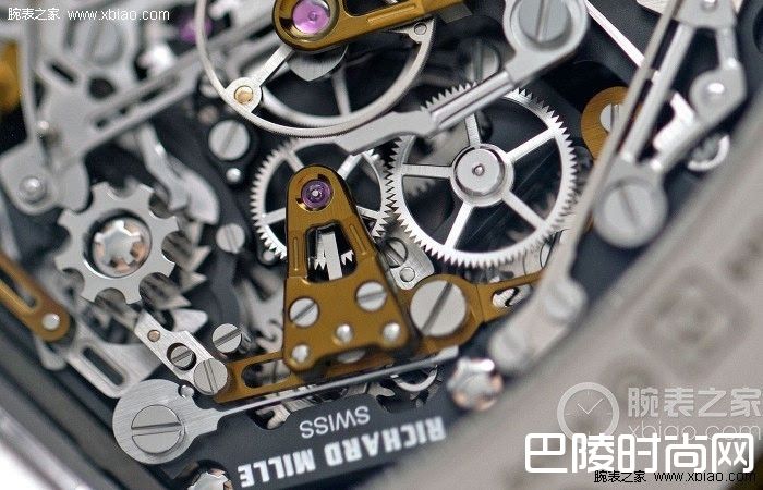 RICHARD MILLE 50-02 ACJ手表在陀飞轮夹板上涂有防腐蚀涂层,使陀飞轮夹板呈现出黄铜色。这种防腐涂层目前也使用在了空客客机上。在陀飞轮夹板上使用这种涂层,除了功能性外,主要也是为了视觉效果。