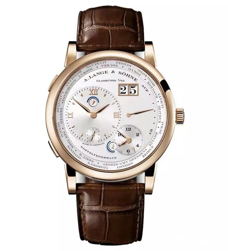 这款玫瑰金腕表在2016年推出,是朗格第六款运用18K蜂蜜色金这种独特表壳材质的腕表,特别以德累斯顿标示城市圈上的欧洲中部时间。18K蜂蜜色金是品牌独自研发的全新材质,较其他金质合金更为坚固。限量100枚。