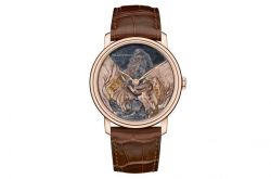 18K红金表壳,深蓝色表盘,镀铑指针与镶饰,黑色鳄鱼皮表带。