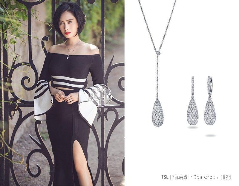 烈焰红唇搭配经典款迷人裙装,黑白呼应,简约却不失设计感,举手投足间散发无尽风情,勾勒出“紫霞仙子”朱茵的完美曲线。TSL|谢瑞麟Raindrop“水韵”系列闪耀动人,灵气的水滴形钻石项链折射出璀璨光芒,尽显优雅高贵气质,诠释完美,格外动人,似仙女般在法兰西尽展自信与魅力。