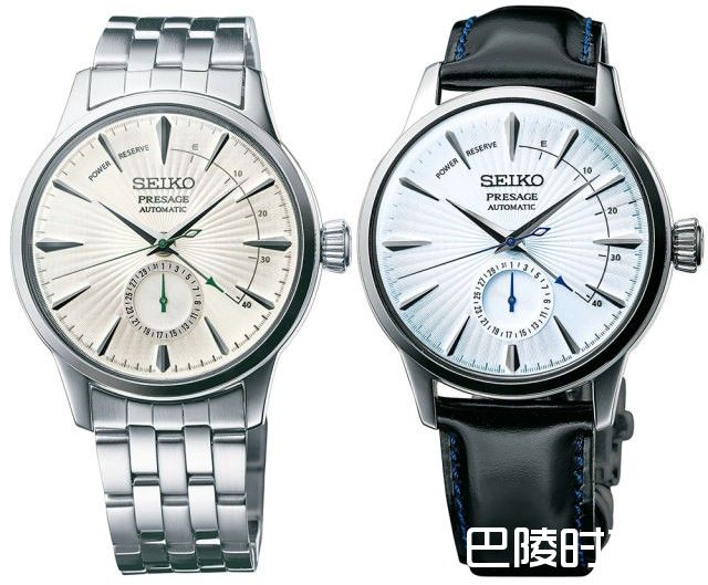 2017年巴展,精工Presage再次携8款鸡尾酒系列而来,每款的设计灵感都来自不同风味的鸡尾酒,其中3点位置单历显示的简单款型号分别是SRPB41J1、43J1、44J1、46J1,含动储显示的型号分别是SSA341J1、343J1、345J1、346J1。