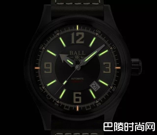 作为简单的三针款,黑色表盘搭配加大的刻度和指针,读时非常清晰。同时镶嵌有15支品牌独创的气灯,能够在夜间自行发光。内部搭载BALL RR1103自动上链机械机芯,防水深度达100米,配备一条棕色优质小牛皮皮带。